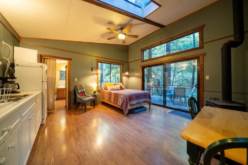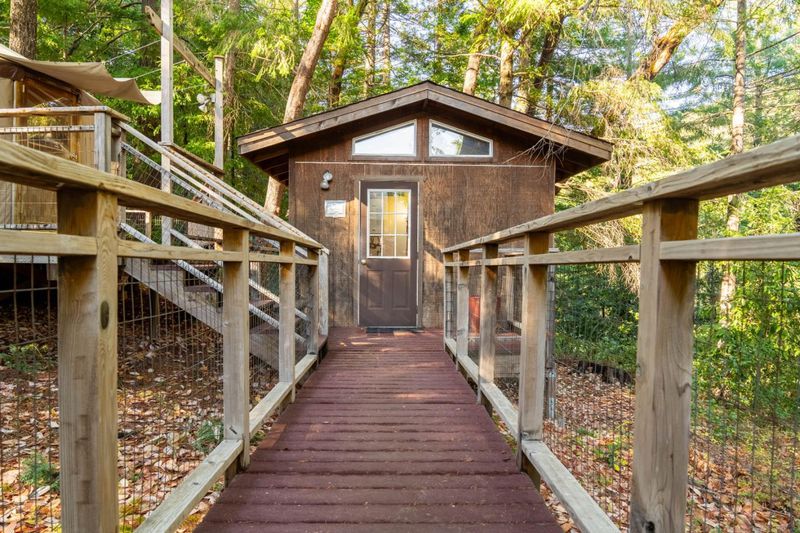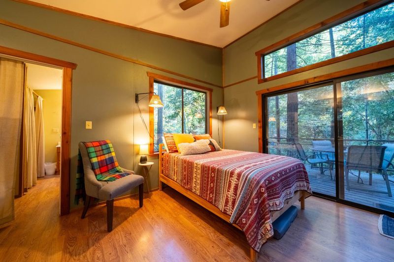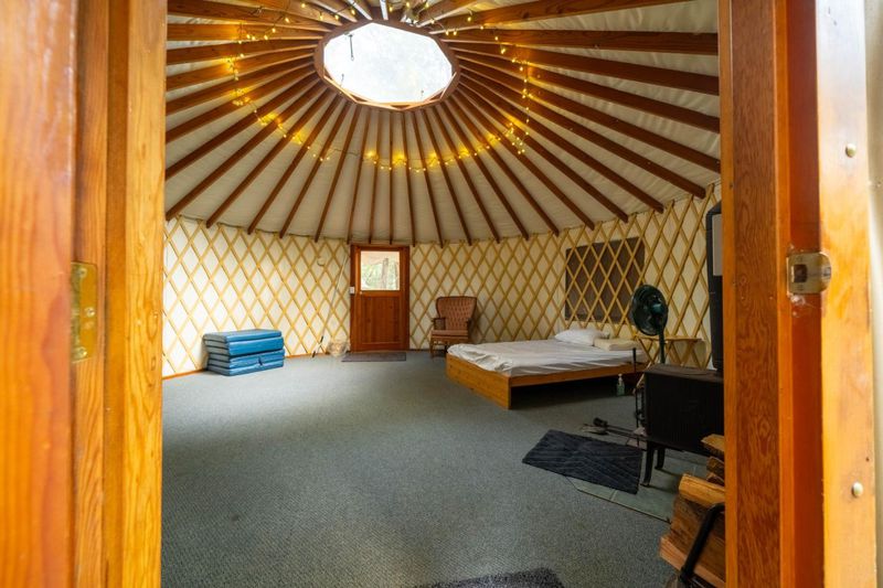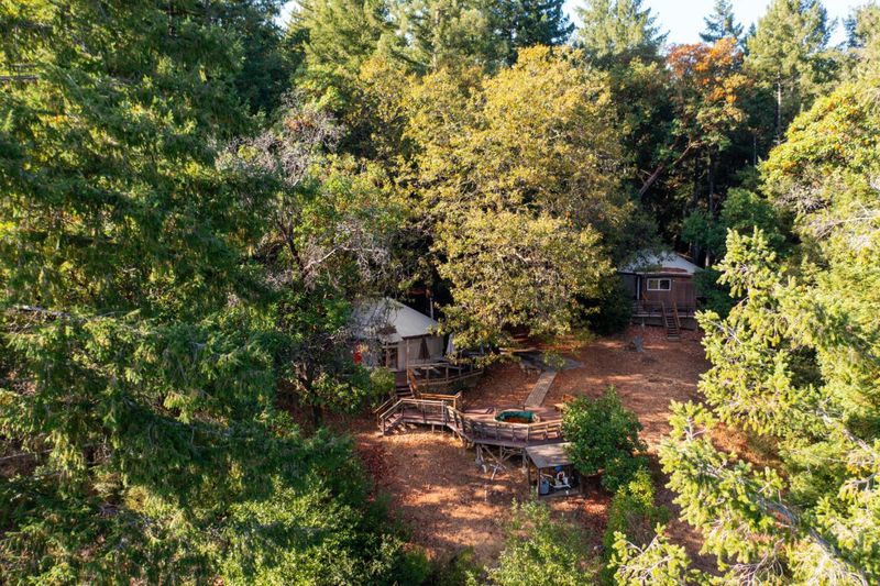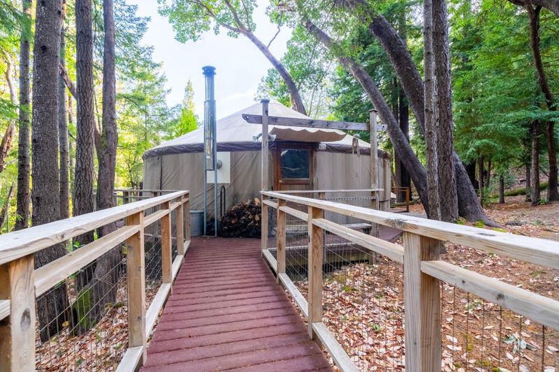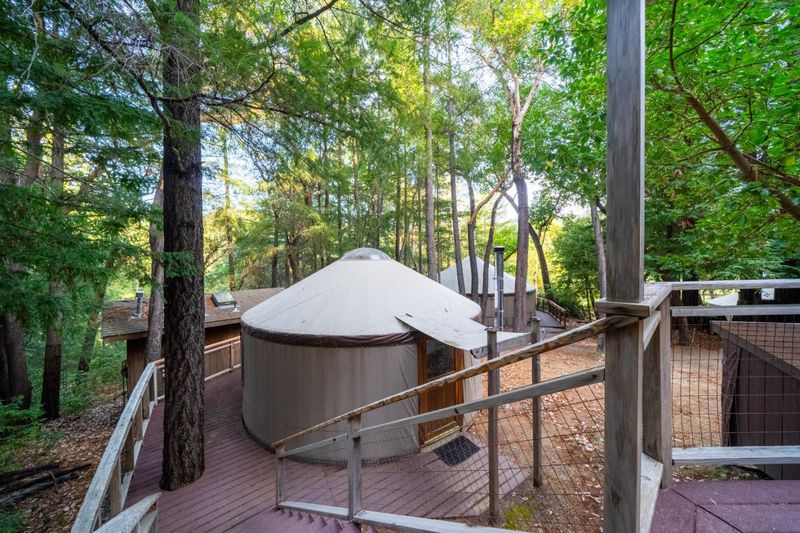 Nestled atop 83 acres in the stunning Boulder Creek mountains, this mountaintop retreat offers endless possibilities. Whether you seek a peaceful sanctuary or a vibrant gathering space, this property is your canvas for inspiration. At its heart is a thoughtfully designed campground, featuring four yurts for sleeping or activities, a spacious camp kitchen and mess hall yurt, and two bathhouse studios with modern comforts like showers and toilets. Evenings come alive on the outdoor performing arts stage, perfect for magical events under the stars. For the creatively inclined, an art studio with a garage and workshop awaits. The 1,700 SqFt main residence, built in 2002, blends rustic charm with modern living, offering 3 bedrooms, 2.5 baths, and an attached two-car garage. For those craving tranquility, a cozy studio cabin nestled near the soothing sounds of Bear Creek provides a private retreat. Whether you envision a serene escape or a dynamic venue, this property invites you to dream big. Surrounded by panoramic mountain views, its the perfect setting for creating memories, connecting with nature, and embracing lifes possibilities.