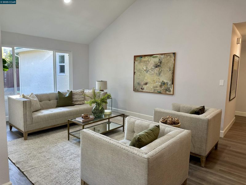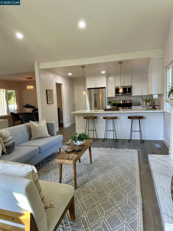 Step into this beautifully renovated, light-filled home located in one of Pinole’s most desirable neighborhoods. Offering 4 bedrooms, 2 baths, and 1,751 sq. ft. of thoughtfully designed living space, this home combines modern comfort with inviting charm. Enjoy the open-concept floor plan featuring both a living room and family room with vaulted ceilings, recessed lighting, and a cozy fireplace. The spacious, updated kitchen boasts Korean countertops, new stainless-steel appliances, and a built-in microwave, perfect for everyday living and entertaining. A separate formal dining area provides an elegant space for gatherings. The primary suite features a walk-in closet, recess lighting and sliding doors that open to a lovely backyard. The primary bath offers dual sinks and beautiful modern fixtures. Additional highlights include a convenient laundry room located near the hall bath. Low maintenance front and backyard, This charming home is just minutes from schools, parks, shopping, and commuter routes. This home has been remodeled with permits.
