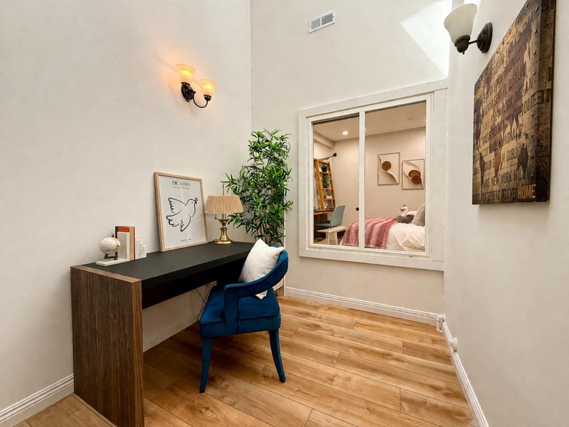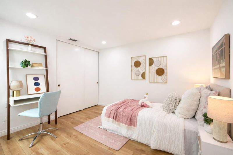 Single Family like Living in this Gorgeous Cupertino ONE LEVEL Home with Versatile 2BR + Private Home Office. Nestled in a quiet cul-de-sac within Cupertino's most desired gated community, De Anza Oaks. Perimeter lot location delivering rare privacy & one of the community's most spacious backyard settings. Light and Bright with soaring vaulted ceilings. Modern renovations throughout! Luxe Kitchen and Baths remodeled in 2022 with high-end cabinetry, modern countertops, and premium fixtures. Wide plank flooring offers a sleek, durable finish well suited for everyday living. Well appointed features include serene primary suite, indoor laundry, copper plumbing, dual pane windows, & skylights. Pristine garage with all white walls & professional grade epoxy flooring, ideal for a gym or workshop. EV charging in the carport, essential for the modern South Bay commute. The triple crown of schools with Stevens Creek Elementary, Kennedy Middle, and Monta Vista High. Community amenities include a junior Olympic pool, children's pool, clubhouse, playground, park, & walking trails... all inside the gates. Close to major Silicon Valley employers including Apple, Google, LinkedIn, Meta, & Nvidia, with convenient access to Whole Foods, Trader Joes, Sprouts, Target, and Main Street shopping.