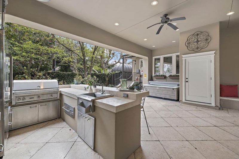 Downtown Willow Glen / One of a kind Mediterranean Estate features 3169 square foot home with ensuite on main level / Additional studio apartment with private entrance adds an additional 519 square feet / Top end finishes throughout / Separate formal dining room with french doors and wainscoting with encased mirrors / Coved ceilings frame custom chandeliers / Gourmet kitchen with Viking appliances surrounded by designer cabinets under granite counters / Primary suite is over 1000 square feet of slate and marble flooring / Private office and gas fireplace makes the upper level a supreme retreat / Exquisite finishes include engineered hardwood floors and crown moldings / Finished 1216 square foot basement has the perfect space for your custom wine cellar or humidor / Complete privacy behind custom walls with ornamental iron gates / Aviary for song birds or spoil your chickens in their custom coop / Manicured landscape of ivy and mature trees bordered by travertine and limestone hardscape / Portico extends living areas to the outdoors / Entertainers dream with gas fireplace and outdoor heaters / Built in stainless appliances include Lynx BBQ with marble island / Surround sound and bullfrog spa / Oversized two car garage with high ceilings and custom storage cabinets / Welcome Home!