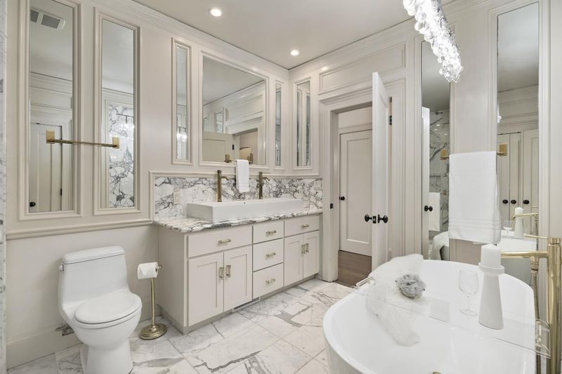 - Bidet, Double Sinks, Solid Surface, Steam Shower, Tub, Updated Bath, Full on Ground Floor, Primary - Oversized Tub, Primary - Stall Shower(s), Stall Shower - 2+