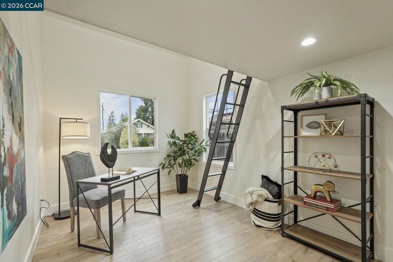 Step into this beautifully renovated 2-bedroom, 1-bathroom home where thoughtful design meets modern comfort. Laminate flooring runs seamlessly throughout, creating a clean, cohesive flow from room to room. One of the standout features is the bedroom with a cozy loft above creating versatile space perfect for a study below and additional sleeping area above. The home also includes a dedicated laundry room for added convenience. At the heart of the home sits the huge custom-designed kitchen, showcasing sleek stainless cabinets, generous counter space, and a layout ideal for cooking, hosting, and everyday living. Outside, the property truly shines. Enjoy a massive front and backyard offering endless possibilities-gardening, play, expansion, or simply relaxing. A large shed provides extra storage & hobbies, and the covered deck creates the perfect spot for outdoor dining or unwinding year-round. With its modern upgrades, unique loft feature, and incredible outdoor space, this home is a rare find that blends style, comfort, and opportunity.