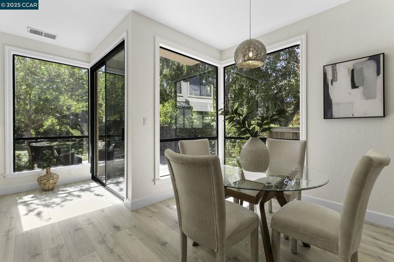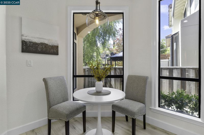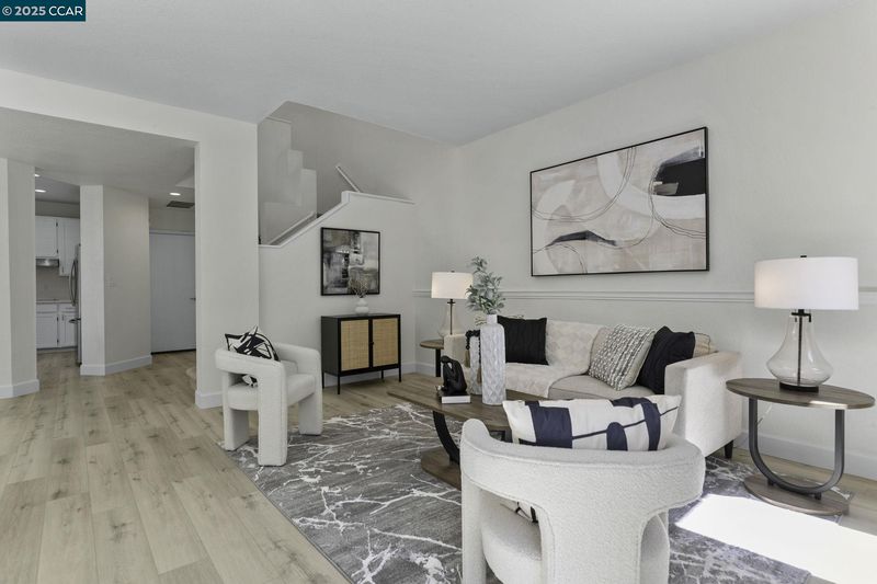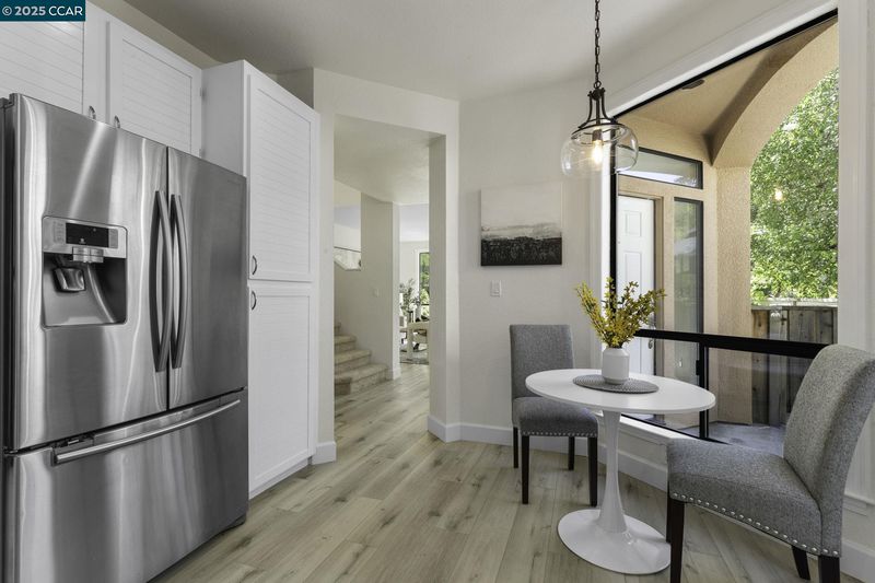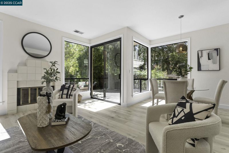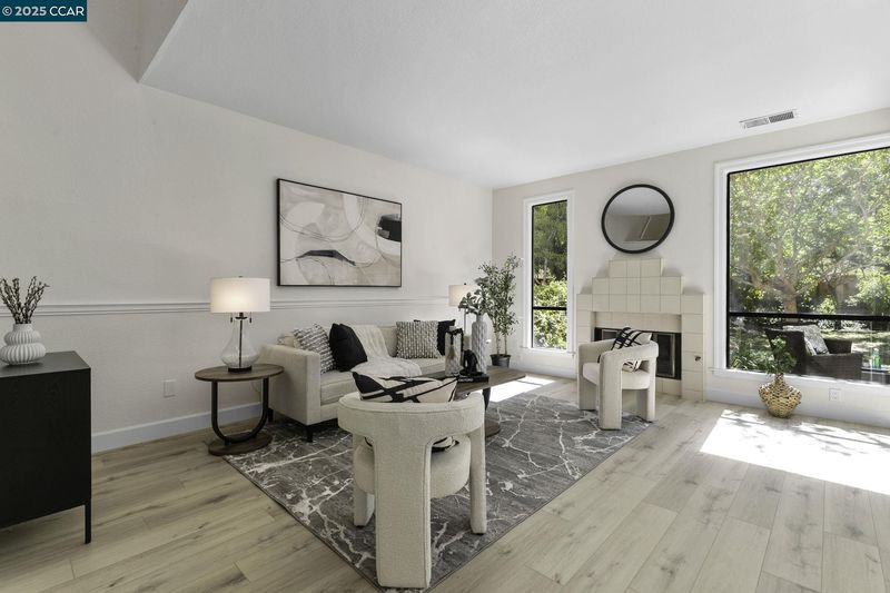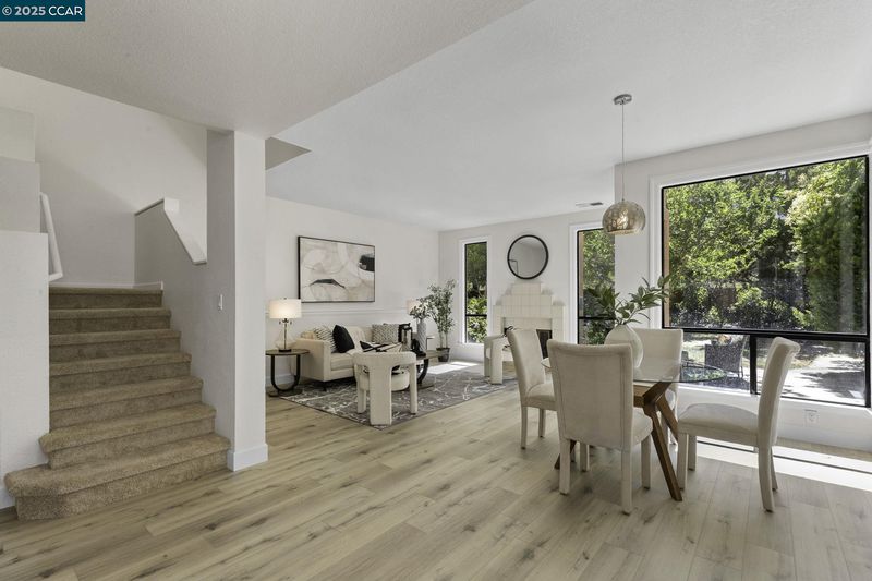 This remodeled unit feels just like a single-family home, featuring an end unit with a large private backyard. It boasts all-new interior paint and flooring. The main level includes a spacious, updated kitchen, a modernized half bath, a generous living room with floor-to-ceiling windows, a cozy fireplace, and a dining area. Upstairs, you'll find the primary suite with a beautifully updated bathroom, two additional bedrooms, and a refreshed secondary bathroom. The updated laundry room is conveniently located on the second floor. Just a short walk to the community pool and spa. HOA DUES INCLUDE WATER, HAZARD INSURANCE, EXTERIOR MAINTENANCE INCLUDING ROOF AND EXTERIOR PAINT. ALL COMMUNITY POOLS, SPAS, PICKLE BALL, TENNIS COURTS AND 24 HOURS A DAY MANNED SECURITY GATE.