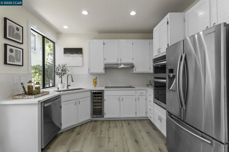 - Dishwasher, Electric Range, Plumbed For Ice Maker, Oven, Range, Refrigerator, Gas Water Heater, Counter - Solid Surface, Eat-in Kitchen, Electric Range/Cooktop, Disposal, Ice Maker Hookup, Oven Built-in, Range/Oven Built-in, Updated Kitchen