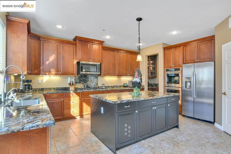 - Dishwasher, Double Oven, Gas Range, Plumbed For Ice Maker, Microwave, Refrigerator, Trash Compactor, Gas Water Heater, Stone Counters, Eat-in Kitchen, Disposal, Gas Range/Cooktop, Ice Maker Hookup, Kitchen Island, Updated Kitchen