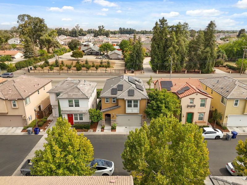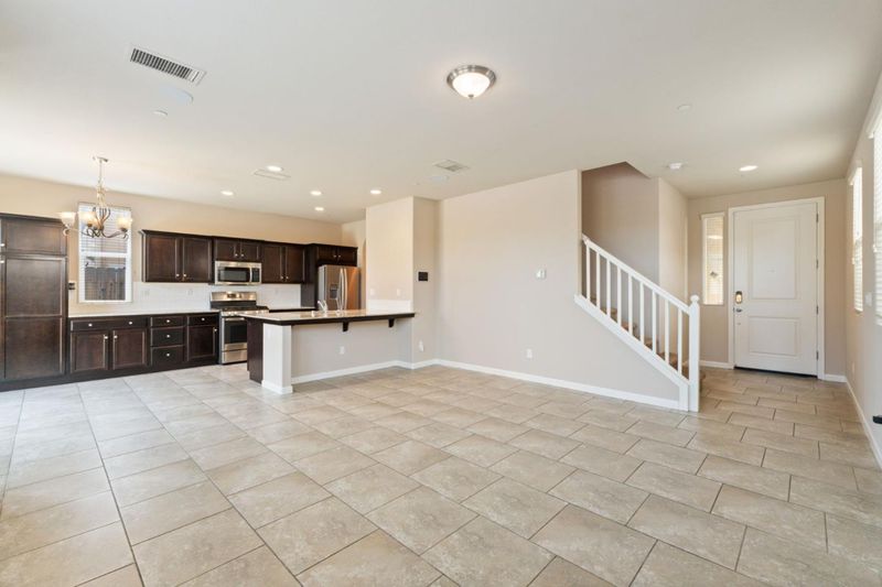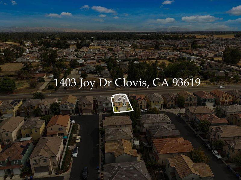 Welcome to 1403 Joy Dr in the coveted Loma Vista community of Clovis. This 2017 Leo Wilson home offers 1,667 sq ft of modern living with 3 bedrooms, 2.5 baths, and an upstairs loft that easily converts into a fourth space for work or play. The open-concept main level flows seamlessly between the kitchen, dining, and living areas, filled with natural light from large windows with stylish mini-blinds. The kitchen features granite counters, stainless steel appliances, and a smart layout perfect for entertaining, while a convenient half bath serves guests downstairs. Upstairs, the primary suite provides a private retreat with its own bath, complemented by two additional bedrooms and a second full bathroom. Energy-saving leased solar and a whole-house water softener add everyday comfort. Enjoy a low-maintenance backyard with clean concrete surround and HOA-maintained front landscaping. Community perks include a sparkling pool, parks, and walking trails all within the award-winning Clovis Unified School District and minutes from the growing Loma Vista Marketplace. Move-in ready and designed for flexible living, this home combines style, efficiency, and convenience in one of Clovis's most desirable neighborhoods.