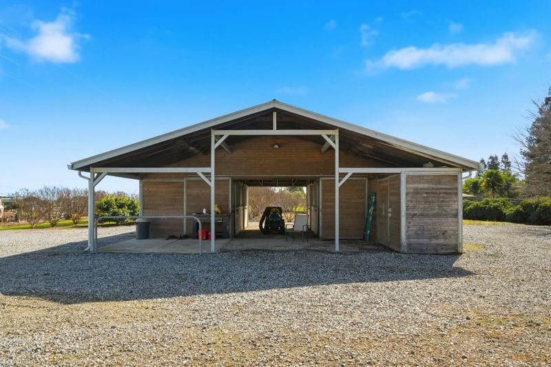Step into your own private oasis on 2.4 acres, where luxury meets tranquility. This custom-built 2002 home offers the perfect blend of comfort and functionality. Entertain poolside, relax in the hot tub, or enjoy your own fruit orchard with peaches, oranges, lemons, avocados, pomegranates, and plums. Collect fresh eggs from your chickens! Equestrians will love the fully equipped 4-stall horse barn, while car enthusiasts will appreciate the 1,400 sq.ft. , detached 4-car garage. A half-moon driveway adds elegance, and the 36-panel paid solar system means virtually no electric bill.