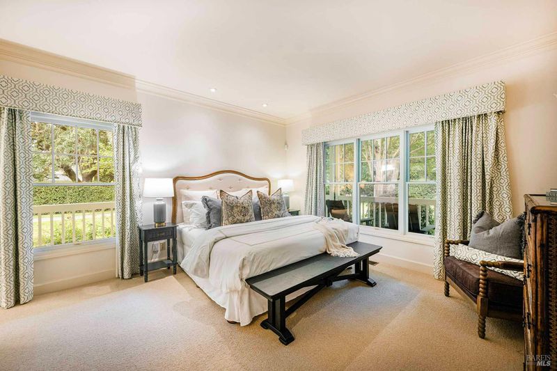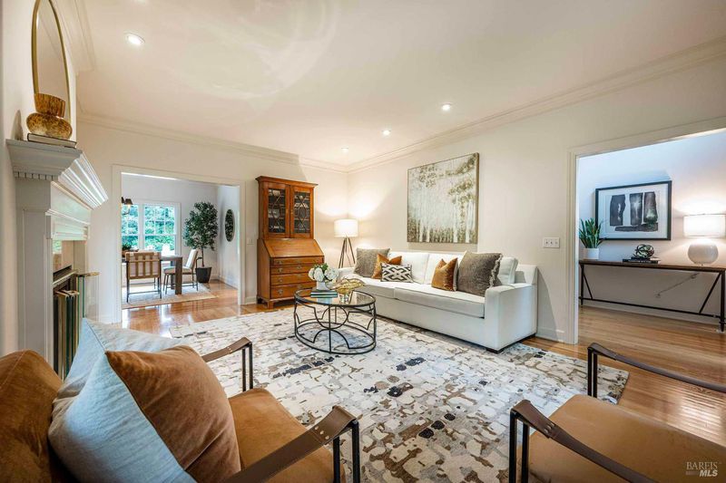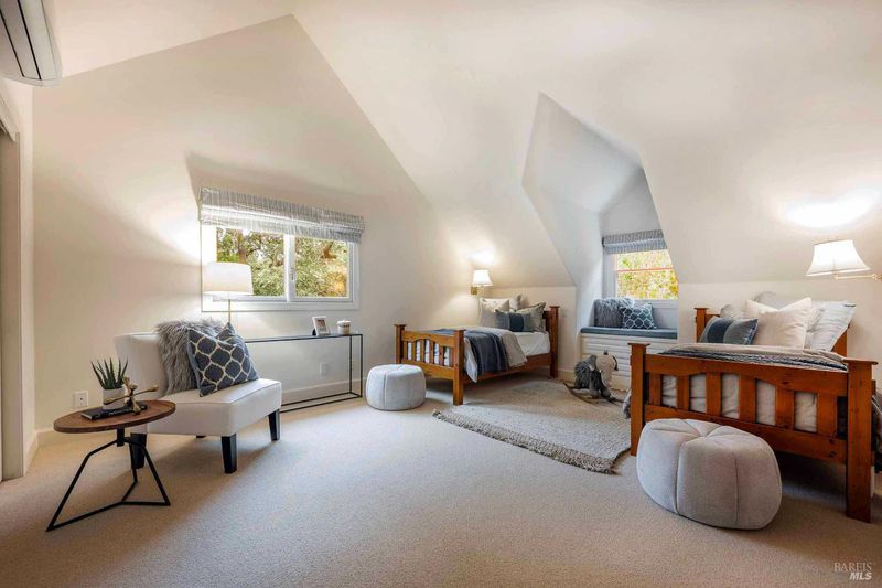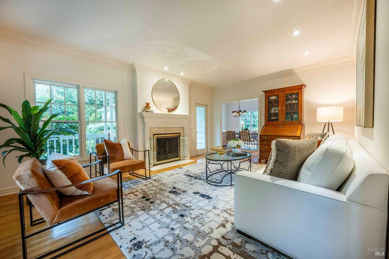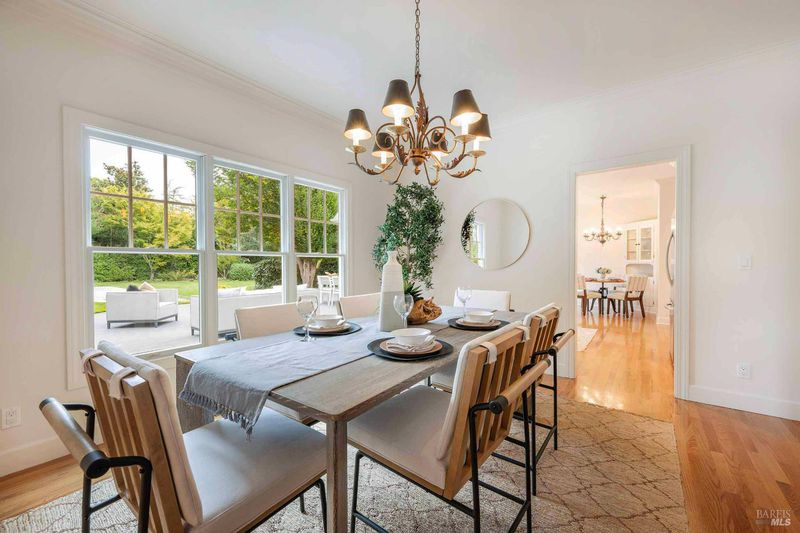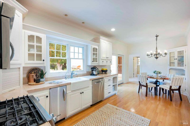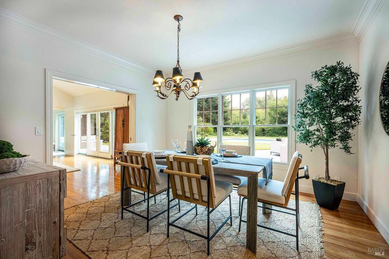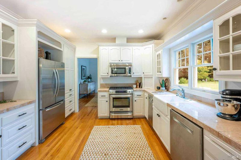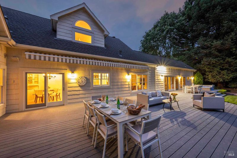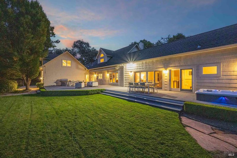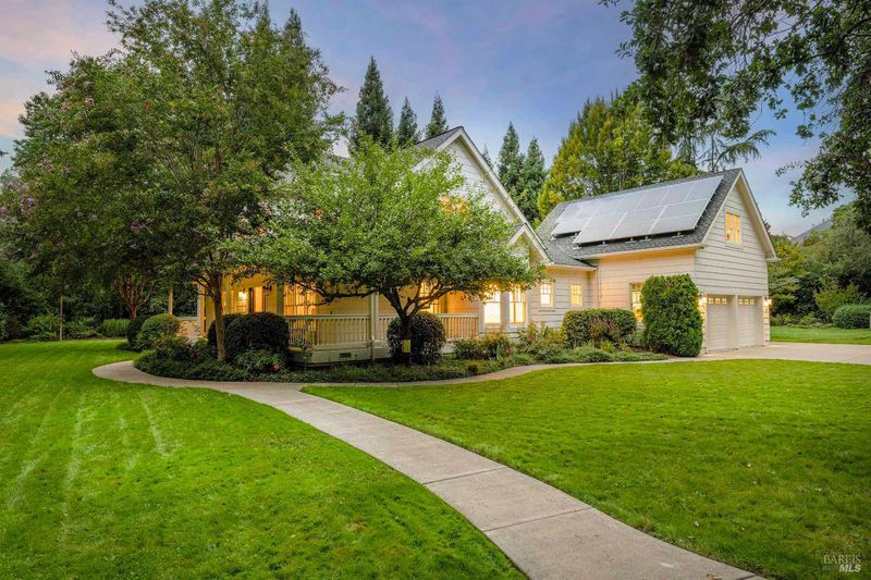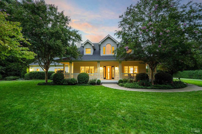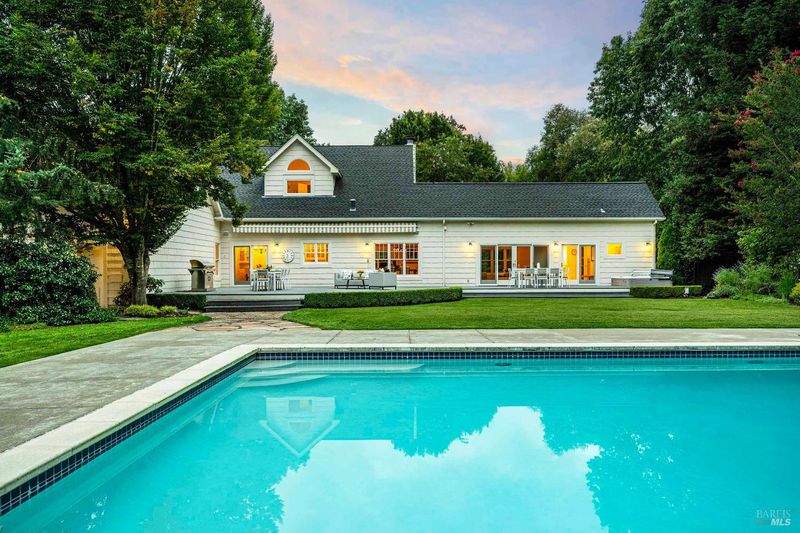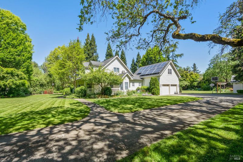 Located in Sonoma's enchanting Valley of the Moon, this charming Kenwood farmhouse captures the essence of wine country living. Nestled at the end of a country lane on a park-like landscape, this hidden treasure radiates a welcoming ambiance, inviting all to sit and stay awhile. Traditional elegance with classic white exterior, wraparound porch and gracious entryway is matched by thoughtful interior floor plan, neutral palette, warm wood floors, formal living room w/fireplace & dining room. The efficient kitchen, w/breakfast area has convenient access to the BBQ and entertainment area. The main-level primary suite features ensuite bath w/soaking tub, while spacious bedrooms upstairs feature charming dormers overlooking the gardens and share a bath. A large family room above the garage provides a great gathering spot for games & movie nights. A sunny sitting room and spa-like baths were added to enhance the living space & provide direct access outside to pool & hot tub. The landscaped grounds feature a dining terrace, w/retractable awning, overlooking a fenced vegetable garden & fruit orchard. Charming cottage is great for office or art studio. Public water, PV solar. The town of Kenwood is located amidst the remarkable wine-growing region, and boasts an enviable lifestyle.