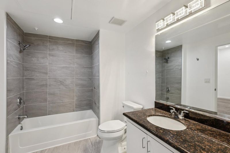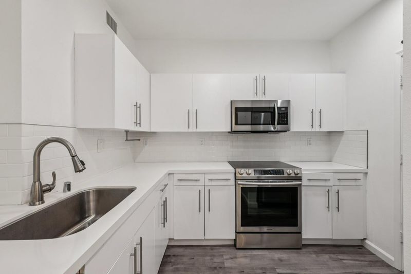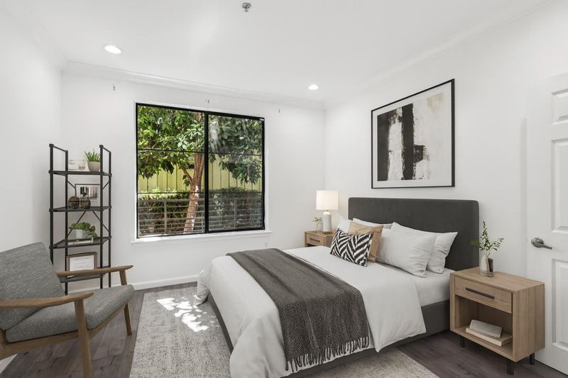 Welcome to this stylish 2 bedroom, 2 bath condo offering 1,000 sq. ft. of modern living in the heart of San Jose. Situated on the ground floor, this home features an open living room and kitchen concept with sleek grey and white tones throughout. The updated kitchen boasts refinished white cabinets, stainless steel appliances, white quartz countertops, and a chic tile backsplash, perfect for both everyday living and entertaining. The bathrooms offer spa like comfort with granite counters, white vanities, grey tile accents, and a soaking tub for relaxation. A private back patio extends the living space outdoors, ideal for morning coffee or unwinding in the evening. Enjoy the convenience of underground parking and a secure, locked building with an indoor mail room for packages. The community provides resort-style amenities including a fitness center, pool, conference/meeting rooms, and moreall designed to enhance your lifestyle. Just minutes from downtown, shopping, and dining. This home falls within the San Jose Unified School District. Perfectly situated for those seeking a balance of comfort and convenience, this San Jose home is a must-see.