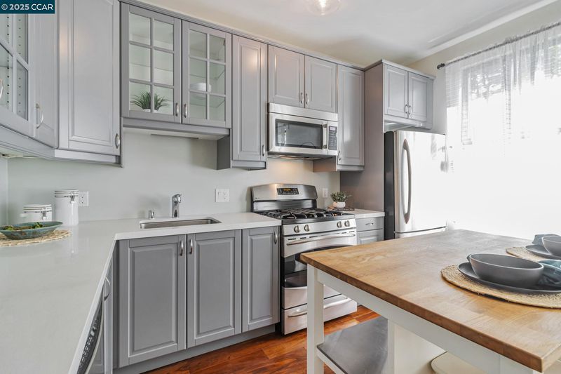 Modern Comfort in the Heart of Piedmont Avenue Welcome to Il Piemonte — a boutique 26-unit community wrapped around a serene, landscaped courtyard. This stylish one-bedroom condo combines contemporary design with unbeatable location. Step into a spacious great room with soaring ceilings, oversized windows that flood the space with natural light, and wide plank flooring throughout. The expanded, modern kitchen features quartz countertops, stainless steel appliances, and elegant glass-front cabinets — perfect for cooking at home or hosting friends. The quiet bedroom overlooks the courtyard and includes a generous walk-in closet. A secured, gated garage spot is included, with EV charging available for residents. Elevator access. Enjoy sunsets or weekend hangouts on the shared rooftop deck. Just outside your door, discover all the charm of Piedmont Avenue — from neighborhood favorites like Fentons and Piedmont Market to everyday essentials like Safeway and Starbucks, all within a short stroll. Whether you're commuting to UC Berkeley or Kaiser Oakland, this location makes it easy to get where you need to be — quickly and conveniently.
