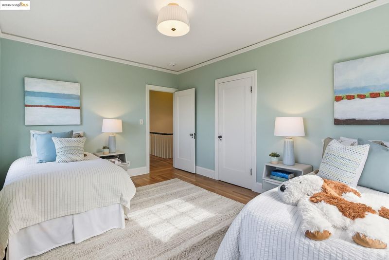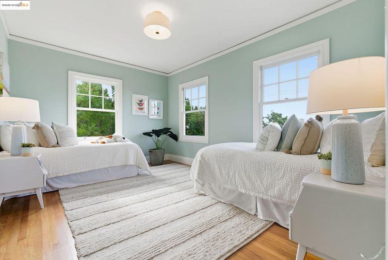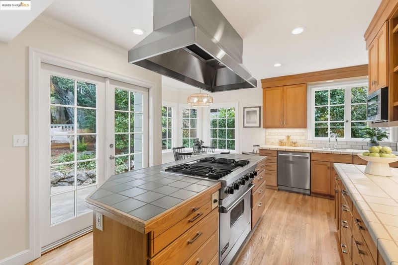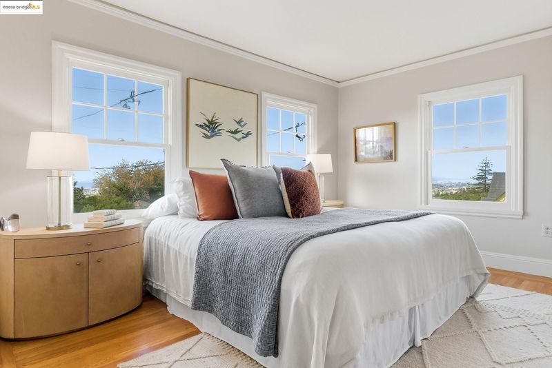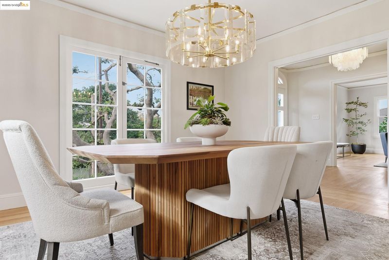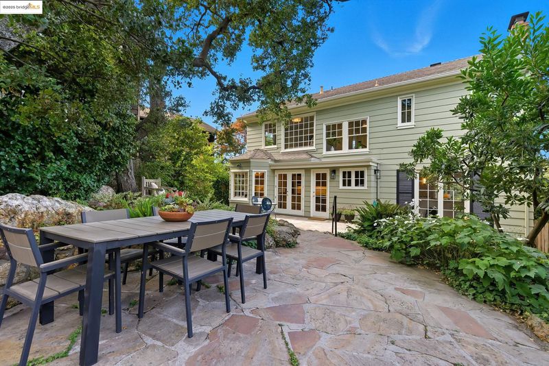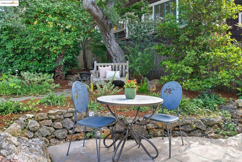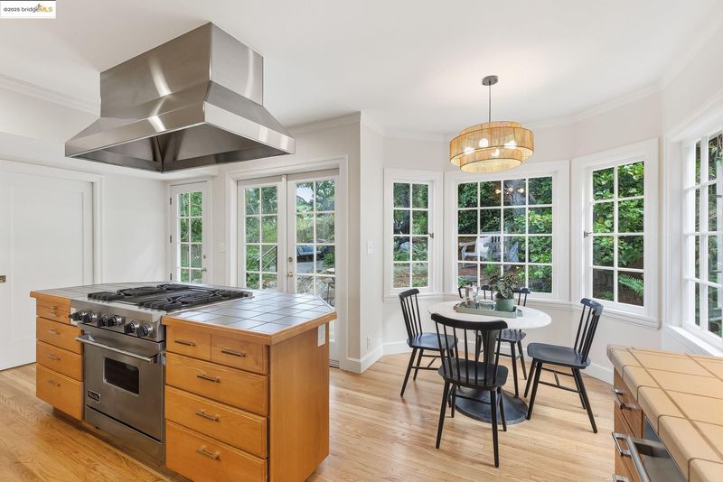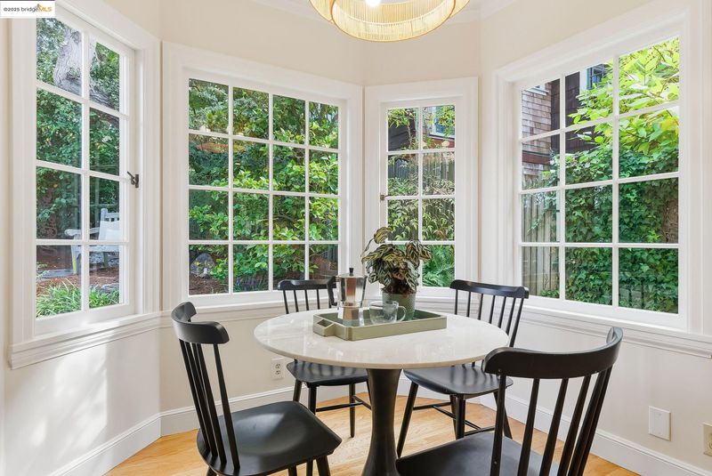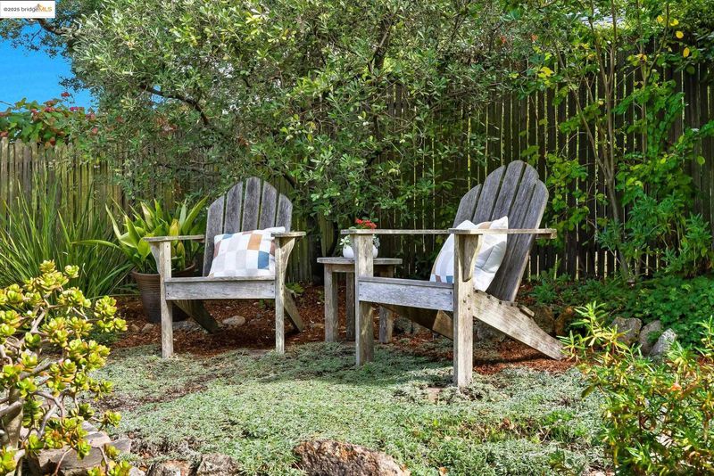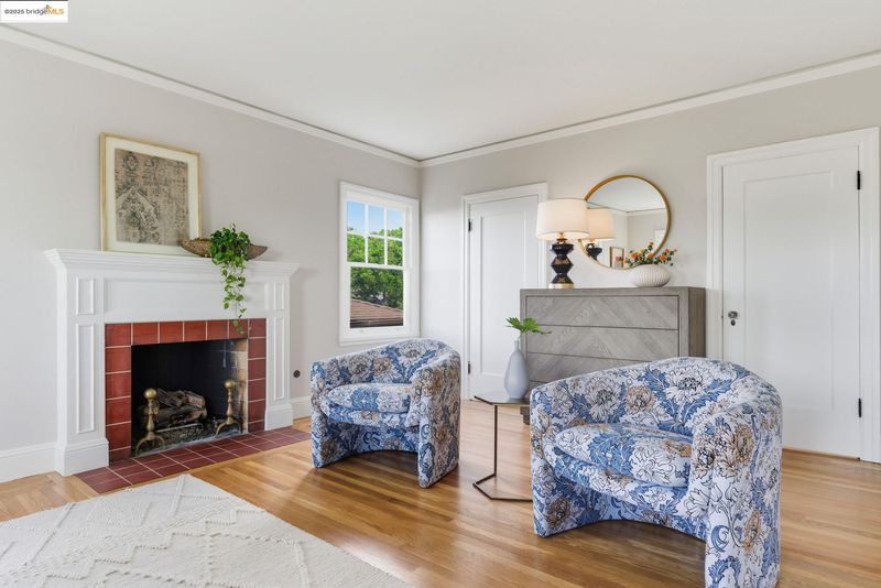 This striking 1920s classic is set in a lovely garden graced by some of the venerable oaks that gave the neighborhood its name. The spacious entry hall and central stairs rise to a landing that has a wall of windows overlooking the garden. The large bright living room boasts windows on three sides, a fireplace, and the character and style of handsome built-ins. Across the hall, in the dining room, original corner cabinets continue the appealing handcrafted details. The kitchen includes a central island, a breakfast nook, and level out access to the inviting garden. Upstairs, there is a spacious primary bedroom with fireplace and views of the Bay. Two additional bedrooms and an updated bathroom with floor to ceiling tiles complete the second floor. Entering the back garden feels like stepping into a soothing natural forest glade. And all of this is just minutes away from AC Transit, BART, Solano Avenue, and the Kensington Sunday farmers’ market.