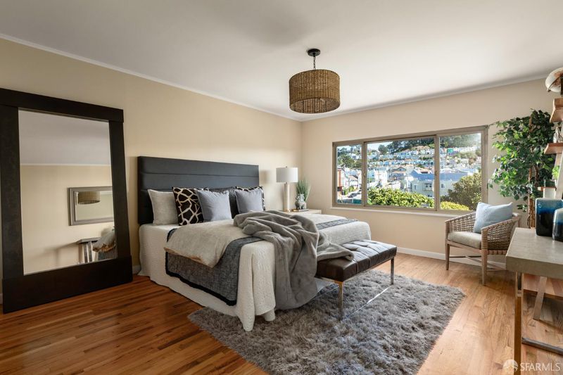 Classic Tunnel Entrance View Home located in the desirable Parkside neighborhood near Noriega and Taraval Streets shopping, transportation, great schools, and lots of outdoor activities like walking the trails of Hawk Hill and Stern Grove Park. The main level boasts an elegant living room adorned w/Grecian style wood burning fireplace, recessed lighting, and striking Red Oak hardwood floors that flow seamlessly throughout the home. Adjacent to the living room is a formal dining room, perfect for entertaining. The eat-in kitchen offers new SS appliances and was recently updated. The horizontal extension of the house is reflected in the spacious bedrooms that overlook the gorgeous backyard and enjoy views of Mt. Davidson, Sutro Tower, and Hawk Hill. 2 full bathrooms complete this level with style and convenience. On the garden level, a large multi-use room overlooks the patio, offering versatility for a home office, media, or guest quarters. The backyard is a private landscaped retreat, featuring Aloe Vera, succulents, Camellia, a Loquat Tree, and a Dracaena palm, a serene setting perfect for entertaining. The garage accommodates 2-3 vehicles w/ample storage. With its permitted horizontal expansion, the home presents an opportunity for redesigning or customization on both levels!